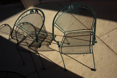 | 図書館のテラスの椅子、よくここでハンバーガーを食べた! |