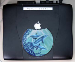 | Duke大学の売店で購入したMac、イルカのシールが貼ってある。現在も使っている。 当時のE-mailや日記も読める。 キーボードが壊れた時は、売店に相談したら、すぐに購買記録を調べてくれて、紹介された修理部部門ではとても親切に直してくれた。 南部田舎町の人はみんなとても親切だった。 |