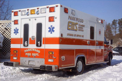 * アメリカの救急車は大きくて、派手である。昔の日本の戦闘機が地味だったのと比べて、アメリカの戦闘機がド派手なペイントをしていたことを思い出させる。