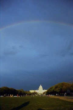 | 空高く、大きな大きな虹がかかっていた。 |