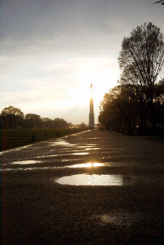 | 振り返るとワシントンモニュメントに夕陽がさしていた。 |