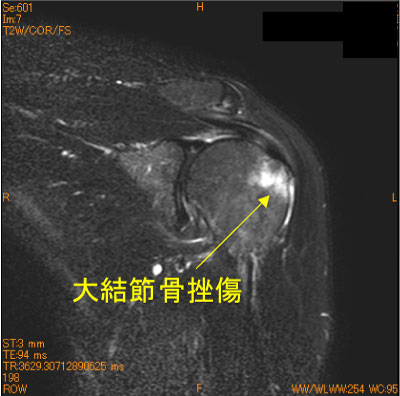 骨挫傷部位は棘上筋腱が単独で付着するsuperior facet。